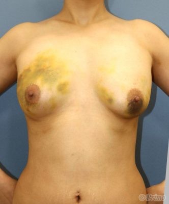 手術前の正面です。 脂肪注入による豊胸を希望され、 コンデンスリッチファット(CRF)を用いて左へ200cc、右へ240cc注入を行いました。 脂肪は大腿全周から吸引しています。 コンデンスリッチファット脂肪注入(CRF)による豊胸術後1週間の経過写真です。 術後はバストが自然にボリュームアップしました。 内出血が強めに出ているようですが、徐々に落ち着いていきます。 手術前の斜めからです。 手術後1週間の斜めからです。 注入は乳頭直下およびわきの下から行っています。 手術前の横からです。 手術後1週間の横からです。 しっかりとボリュームアップしています。 ・費用(税別、麻酔代別) コンデンスリッチ豊胸術 ¥1,200,000 ・リスク・副作用(起こり得る可能性のあること) 腫れ、内出血、痛み 傷跡 皮膚の張りの減少 貧血 吸引部位の知覚低下 色素沈着 しこりの形成、脂肪壊死 肥厚性瘢痕 左右差 コンデンスリッチ豊胸術 にほんブログ村 美容外科 ブログランキングへ