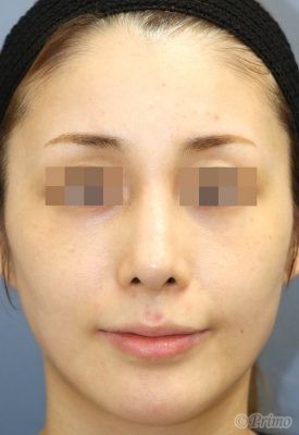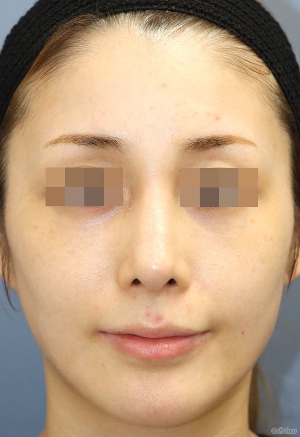 手術前の正面です。 術前は他院で3度プロテーゼを入れていました。 鼻筋が曲がってしまったため、プロテーゼ入れ替えを他院で1年程前に行いましたが、 なお曲がっている鼻筋を改善し、鼻先も高くしたいということで、 当院で鼻中隔延長術+他院鼻プロテーゼ入れ替え術+眉間プロテーゼ手術を行いました。 曲がるリスクを減らすため、オーダーメイドのプロテーゼを使用しています。 鼻中隔延長術+他院鼻プロテーゼ入れ替え術(特別注文プロテーゼ)+眉間プロテーゼ手術後6ヶ月の経過写真です。 術後は鼻中隔延長術、プロテーゼ入れ替えによって、 曲がっていた鼻筋が真っすぐになり、自然な形態になりました。 手術前の斜めからです。 手術後6ヶ月の斜めからです。 術後は眉間プロテーゼの効果で眉間から鼻先にかけて鼻筋がきれいに通りました。 手術前の横からです。 手術後6ヶ月の横からです。 鼻中隔延長術、眉間プロテーゼの効果で、 眉間から鼻先にかけて全体的にバランス良く高くなりました。 ご本人の希望により鼻先はやや上向きになっています。 鼻全体が高くなり、より立体的な顔立ちになりました。 ・費用(税別、麻酔代別) 鼻中隔延長術 ¥600,000 他院鼻プロテーゼ入れ替え術 ¥400,000 眉間プロテーゼ ¥300,000 ・リスク・副作用(起こり得る可能性のあること) 腫れ、内出血、鼻出血、鼻づまり 鼻柱の傷跡 鼻先、耳介の知覚低下 鼻の傾き 鼻尖部の挙上ができない 鼻の形の左右差 プロテーゼの動揺 鼻中隔延長術 眉間プロテーゼ にほんブログ村 美容外科ブログランキングへ Tags:眉間プロテーゼ鼻プロテーゼ入れ替え術鼻中隔延長術