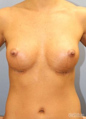 シリコンプロテーゼによる豊胸術後2週間の経過写真です。