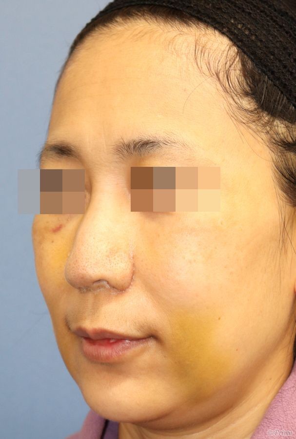 手術前の正面です。 他院で20年ほど前に鼻翼縮小術(外側法)、鼻尖縮小術を受けていらっしゃいました。 鼻翼に丸みがほしいということで、当院で鼻翼修正術を行いました。 鼻翼修正術手術後1週間の経過写真です。 術後は鼻翼に丸みが得られ、自然な形になりました。 鼻翼の頬との境界が明瞭になっています。 手術前の斜めからです。 手術後1週間の斜めからです。 術後の縫合部がまだ目立ちますが、 徐々に落ち着いていきます。 手術前の横からです。 手術後1週間の横からです。 手術前の下からです。 手術後1週間の下からです。 術前はハの字に広がっていた鼻翼に丸みができました。 ・費用(税別、麻酔代別) 鼻翼修正術 ¥300,000 組織の移動や移植を伴う複雑なもの ¥500,000 ・リスク・副作用(起こり得る可能性のあること) 腫れ、内出血、鼻出血 鼻の知覚低下 鼻づまり 傷跡 鼻の形の左右差 鼻翼部が丸く感じる 鼻翼部が厚くなる、硬くなる 鼻翼修正術 にほんブログ村 美容外科ブログランキングへ Tags:鼻翼修正術