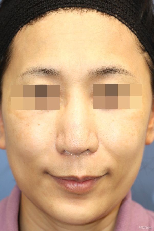 手術前の正面です。 他院で20年ほど前に鼻翼縮小術(外側法)、鼻尖縮小術を受けていらっしゃいました。 鼻翼に丸みがほしいということで、当院で鼻翼修正術を行いました。 鼻翼修正術手術後1ヶ月の経過写真です。 術後は鼻翼修正術の効果で鼻翼に丸みが得られ、自然な形になりました。 鼻翼の頬との境界が明瞭になりました。 手術前の斜めからです。 手術後1ヶ月の斜めからです。 術後は鼻翼に丸みが形成され、鼻翼基部がはっきりとしました。 手術前の横からです。 手術後1ヶ月の横からです。 手術前の下からです。 手術後1ヶ月の下からです。 術前はハの字に広がっていた鼻翼に丸みが形成されました。 鼻の横幅も狭くなりました。 ・費用(税別、麻酔代別) 鼻翼修正術 ¥300,000 組織の移動や移植を伴う複雑なもの ¥500,000 ・リスク・副作用(起こり得る可能性のあること) 腫れ、内出血、鼻出血 鼻の知覚低下 鼻づまり 傷跡 鼻の形の左右差 鼻翼部が丸く感じる 鼻翼部が厚くなる、硬くなる 鼻翼修正術 にほんブログ村 美容外科ブログランキングへ Tags:鼻翼修正術