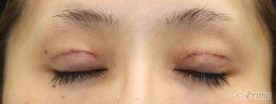 まだ腫れがある時期ですが、左右差が改善し、はっきりした平行型の二重が形成されています。