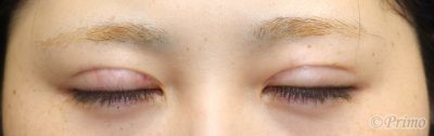 他院で埋没法による二重形成を受けていらっしゃいましたが、取れない方法での二重形成を希望され、全切開、上眼瞼脱脂を行いました。