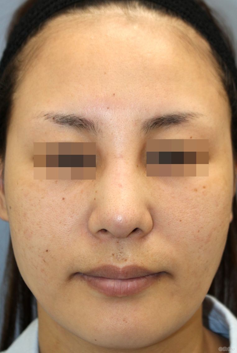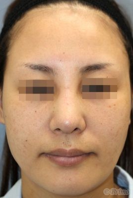 手術前の正面です。 術前は他院で10年ほど前にL型プロテーゼを入れていました。 もっと高さを出したいということで、 当院で鼻中隔延長術+他院鼻プロテーゼ入れ替え術+眉間プロテーゼ手術を行いました。 鼻中隔延長術+他院鼻プロテーゼ入れ替え術+眉間プロテーゼ手術後2週間の経過写真です。 術後は鼻中隔延長術によって鼻先が高く、下向きになりました。 眉間プロテーゼによって眉間から鼻筋がきれいに通りました。 手術前の斜めからです。 手術後2週間の斜めからです。 術後は眉間プロテーゼの効果で眉間から鼻筋にかけてのつながりが良くなりました。 手術前の横からです。 手術後2週間の横からです。 鼻先が下向きになりました。 術前より鼻先が高くなり、 眉間から鼻先にかけてのつながりが良くなりました。 e-lineが改善し、口元が控えめに見えるようになりました。 ご希望により、眉間を高めに出しています。 ・費用(税別、麻酔代別) 鼻中隔延長術 ¥600,000 他院鼻プロテーゼ入れ替え術 ¥400,000 眉間プロテーゼ ¥300,000 ・リスク・副作用(起こり得る可能性のあること) 腫れ、内出血、鼻出血、鼻づまり 鼻柱の傷跡 鼻先、耳介の知覚低下 鼻の傾き 鼻尖部の挙上ができない 鼻の形の左右差 プロテーゼの動揺 鼻中隔延長術 眉間プロテーゼ にほんブログ村 美容外科ブログランキングへ Tags:眉間プロテーゼ鼻プロテーゼ入れ替え術鼻中隔延長術