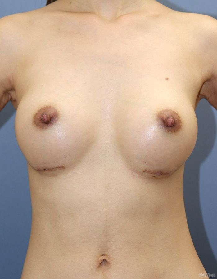 手術前の正面です。 バストを大きくしたいというご要望から、 当院でシリコンプロテーゼによる豊胸術を行いました。 シリコンプロテーゼによる豊胸術後1ヶ月の経過写真です。 術後は大きくボリュームアップし、自然で形の良いバストになりました。 ご本人のご希望により、バストのアンダーから入れています。 手術前の斜めからです。 手術後1ヶ月の斜めからです。 バストのアンダーから切開し、 アナトミカルタイプのコヒーシヴシリコンを入れています。 大胸筋筋膜下に挿入しています。 手術前の横からです。 手術後1ヶ月の横からです。 サイズは術中にご自身で確認し、 265ccを選択されました。 ・費用(税別、麻酔代別) 豊胸術 ¥700,000 豊胸術(300cc以上) ¥800,000 ・リスク・副作用(起こり得る可能性のあること) 腫れ、内出血、痛み 皮膚のつっぱり感、てかり わきの可動域制限、傷の赤み、盛り上がり バストや上腕のしびれ、知覚低下 被膜拘縮、リップリング、左右差 プロテーゼの動揺、プロテーゼの破損 豊胸術(ソフトコヒーシヴシリコン) にほんブログ村 美容外科 ブログランキングへ Tags:シリコンプロテーゼ大胸筋筋膜下豊胸術