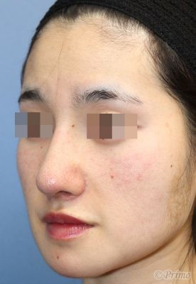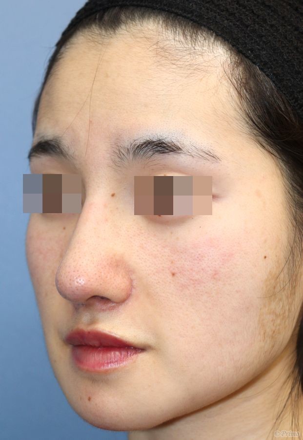 手術前の正面です。 鼻筋をしっかりと通して鼻先も細くしたいというご希望から、 当院で鼻中隔延長術+隆鼻術+眉間プロテーゼ手術(特別注文プロテーゼ)を行いました。 鼻中隔延長術+隆鼻術+眉間プロテーゼ(特別注文プロテーゼ)手術後2週間の経過写真です。 術後は鼻中隔延長術によって鼻先が下向きに高くなりました。 まだ腫れが残っているようですが、これから落ち着いてもっと細くなります。 手術前の斜めからです。 手術後2週間の斜めからです。 手術前の横からです。 手術後2週間の横からです。 オーダーメイドのプロテーゼにより眉間が高くなり、 眉間から鼻先まで鼻筋がしっかりと通りました。 ・費用(税別、麻酔代別) 鼻中隔延長術 ¥600,000 隆鼻術 ¥300,000 眉間プロテーゼ ¥300,000 ・リスク・副作用(起こり得る可能性のあること) 腫れ、内出血、鼻出血、鼻づまり 鼻柱の傷跡 鼻先、耳介の知覚低下 鼻の傾き 鼻尖部の挙上ができない 鼻の形の左右差 プロテーゼの動揺 鼻中隔延長術 隆鼻術 眉間プロテーゼ にほんブログ村 美容外科ブログランキングへ Tags:眉間プロテーゼ隆鼻術鼻中隔延長術