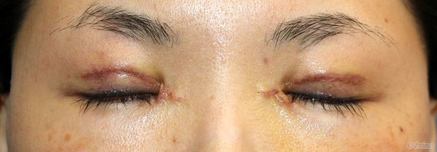 手術前の目元です。 他院で12年前に埋没法、4年前に全切開、目頭切開を受けていらっしゃいましたが、 目頭の傷が気になるのと、目の開きが弱いのを改善したいということで、 当院で眼瞼下垂手術+蒙古襞形成術(目頭切開修正)を行いました。 蒙古襞形成術手術後1週間の経過写真です。 make upなしです。 まだ硬く、腫れがありますが、目の開きが良くなりました。 蒙古襞形成術によって目頭が丸くなり、優しい印象の目になりました。 術後1週間の目を閉じたところです。 ・費用(税別、麻酔代別) 眼瞼下垂手術 ¥600,000 蒙古襞形成術 ¥350,000 ・リスク・副作用(起こり得る可能性のあること) 腫れ、内出血、瞼の違和感、傷跡 睫毛側皮膚の知覚低下 ラインの消失 瞼の形態の変化、顔の印象の変化 閉瞼不全、ドライアイ ヘリング現象 ドッグイヤー 蒙古襞形成(目頭切開修正) にほんブログ村 美容外科ブログランキングへ Tags:眼瞼下垂手術蒙古襞形成術