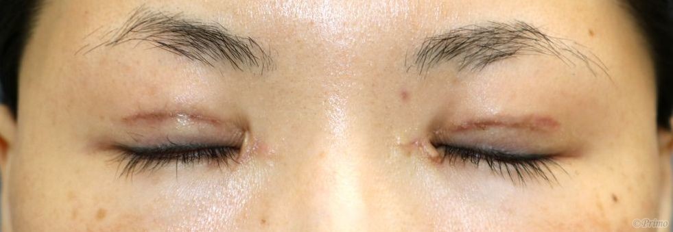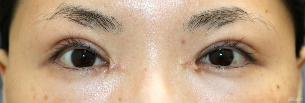 手術前の目元です。 他院で12年前に埋没法、4年前に全切開、目頭切開を受けていらっしゃいましたが、 目頭の傷が気になるのと、目の開きが弱いのを改善したいということで、 当院で眼瞼下垂手術+蒙古襞形成術(目頭切開修正)を行いました。 蒙古襞形成術手術後2週間の経過写真です。 make upなしです。 まだ腫れやむくみがありますが、これから落ち着いて目の開きもさらに良くなります。 蒙古襞形成術によって目の内側が隠れ、丸く優しい印象の目になりました。 術後2週間の目を閉じたところです。 ・費用(税別、麻酔代別) 眼瞼下垂手術 ¥600,000 蒙古襞形成術 ¥350,000 ・リスク・副作用(起こり得る可能性のあること) 腫れ、内出血、瞼の違和感、傷跡 睫毛側皮膚の知覚低下 ラインの消失 瞼の形態の変化、顔の印象の変化 閉瞼不全、ドライアイ ヘリング現象 ドッグイヤー 蒙古襞形成(目頭切開修正) にほんブログ村 美容外科ブログランキングへ Tags:眼瞼下垂手術蒙古襞形成術