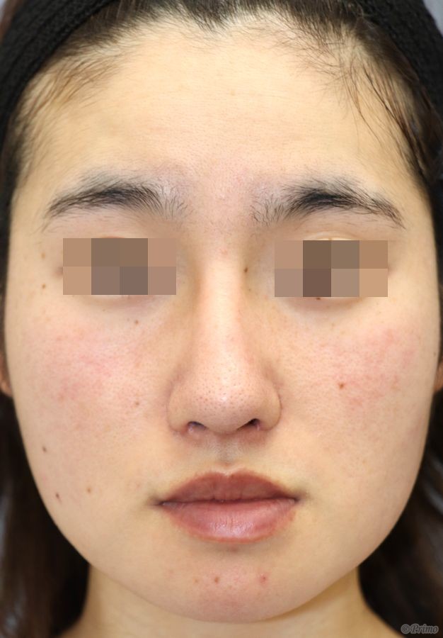 手術前の正面です。 鼻筋をしっかりと通して鼻先も細くしたいというご希望から、 当院で鼻中隔延長術+隆鼻術+眉間プロテーゼ手術(特別注文プロテーゼ)を行いました。 鼻中隔延長術+隆鼻術+眉間プロテーゼ(特別注文プロテーゼ)手術後3ヶ月の経過写真です。 鼻中隔延長術の効果で鼻柱が下り、鼻先が下向きに高くなりました。 手術前の斜めからです。 手術後3ヶ月の斜めからです。 手術前の横からです。 手術後3ヶ月の横からです。 オーダーメイドのプロテーゼによって眉間が高くなり、 鼻筋がしっかりと通りました。 鼻全体のバランスが良くなりました。 ・費用(税別、麻酔代別) 鼻中隔延長術 ¥600,000 隆鼻術 ¥300,000 眉間プロテーゼ ¥300,000 ・リスク・副作用(起こり得る可能性のあること) 腫れ、内出血、鼻出血、鼻づまり 鼻柱の傷跡 鼻先、耳介の知覚低下 鼻の傾き 鼻尖部の挙上ができない 鼻の形の左右差 プロテーゼの動揺 鼻中隔延長術 隆鼻術 眉間プロテーゼ にほんブログ村 美容外科ブログランキングへ Tags:眉間プロテーゼ隆鼻術鼻中隔延長術