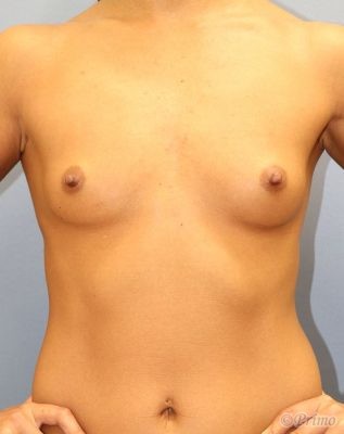 シリコンプロテーゼによる豊胸術後2か月の経過写真です。