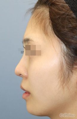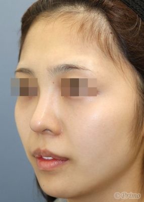 鼻中隔延長術+他院鼻プロテーゼ入れ替え術+眉間プロテーゼ手術後3か月の経過写真です。