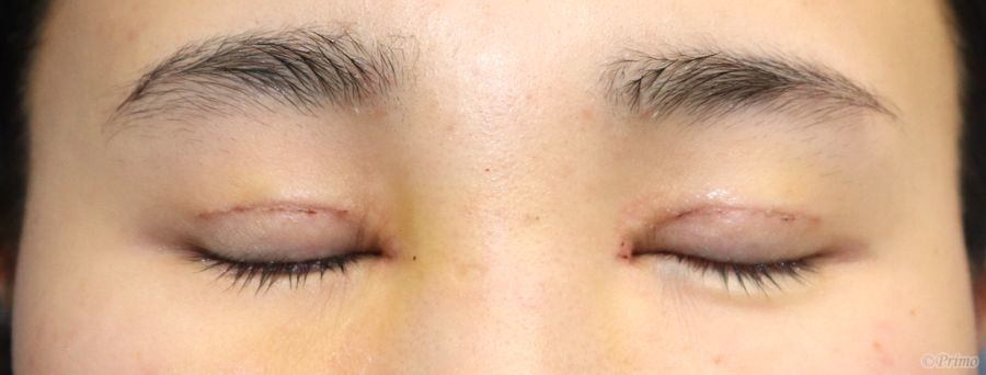 手術前の目元です。 術前は他院で埋没法、目頭切開手術を受けていらっしゃいました。 目頭の丸い感じが嫌で、シャープにしたいということで、 当院で全切開+上眼瞼脱脂術、目頭切開手術を行いました。 全切開+上眼瞼脱脂術、目頭切開手術後1週間の経過写真です。 make upなしです。 術後は目頭切開によって目と目の距離が近くなり、 目頭がシャープになって大人っぽい印象の目元になりました。 手術後1週間の目を閉じたところです。 ・費用(税別、麻酔代別) 全切開+上眼瞼脱脂術 ¥350,000 目頭切開術 ¥250,000 ・リスク・副作用(起こり得る可能性のあること) 腫れ、内出血 瞼の違和感 傷跡 睫毛側皮膚の知覚低下 埋没した吸収糸の露出 ラインの消失 瞼の形態の変化 全切開 目頭切開 にほんブログ村 美容外科ブログランキングへ Tags:上眼瞼脱脂術二重全切開目頭切開