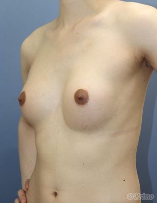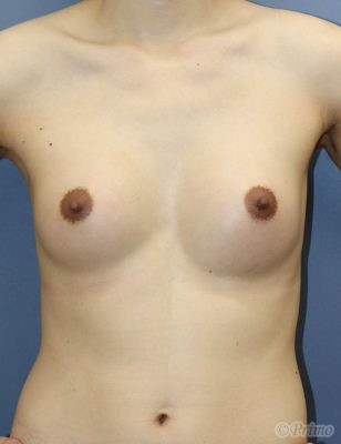 アクアフィリング除去、シリコンプロテーゼによる豊胸術後1か月の経過写真です。