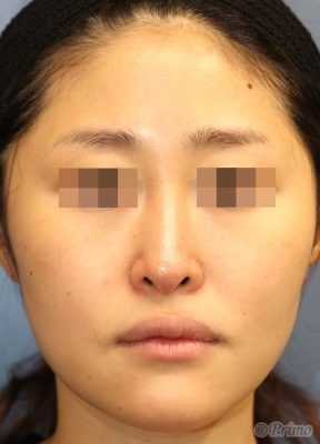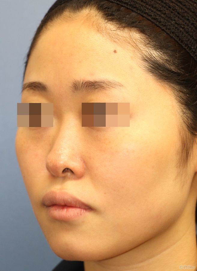 手術前の正面です。 鼻を高くして鼻先を整えたいというご希望から、 当院で鼻中隔延長術+隆鼻術+眉間プロテーゼ手術(特別注文プロテーゼ)を行いました。 鼻中隔延長術+隆鼻術+眉間プロテーゼ(特別注文プロテーゼ)手術後6ヶ月の経過写真です。 鼻中隔延長術の効果で鼻先が下向きに高くなりました。 正面から鼻の穴が見えにくくなっています。 眉間プロテーゼによって鼻筋もしっかり通りました。 手術前の斜めからです。 手術後6ヶ月の斜めからです。 手術前の横からです。 手術後6ヶ月の横からです。 鼻中隔延長術、オーダーメイドの眉間プロテーゼによって、 上向きの鼻が下向きに整いました。 おでこからのつながりも良くなりました。 鼻全体が自然に高くなり、顔立ちに立体感が生まれています。 ・費用(税別、麻酔代別) 鼻中隔延長術 ¥600,000 隆鼻術 ¥300,000 眉間プロテーゼ ¥300,000 ・リスク・副作用(起こり得る可能性のあること) 腫れ、内出血、鼻出血、鼻づまり 鼻柱の傷跡 鼻先、耳介の知覚低下 鼻の傾き 鼻尖部の挙上ができない 鼻の形の左右差 プロテーゼの動揺 鼻中隔延長術 隆鼻術 眉間プロテーゼ にほんブログ村 美容外科ブログランキングへ Tags:眉間プロテーゼ隆鼻術鼻中隔延長術