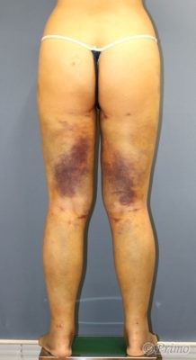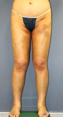 大腿前面から800cc、後面から1400cc、下腿から450cc吸引しました