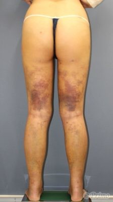 大腿前面から800cc、後面から1400cc、下腿から450cc吸引しました