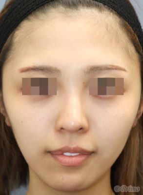 鼻中隔延長術+他院鼻プロテーゼ入れ替え術+眉間プロテーゼ手術後6か月の経過写真です。