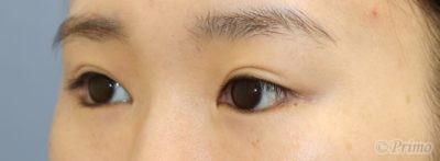 下眼瞼拡大術、目尻切開術の効果で目が下方向、外側方向へと大きくなりました。