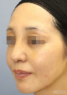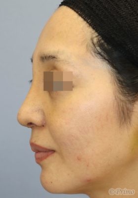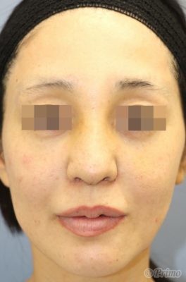 鼻中隔延長術+隆鼻術+眉間プロテーゼ挿入術、アクアミド除去、鼻翼縮小術(内側法)を施行しました。