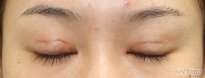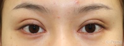 右側の眉毛挙上癖があるため、二重幅も少し広く見えています。