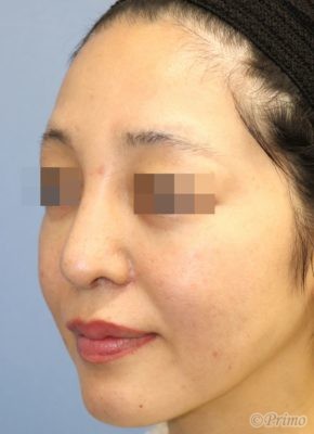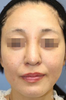 鼻中隔延長術+隆鼻術+眉間プロテーゼ、アクアミド除去、鼻翼縮小術(内側法)手術後2か月の経過写真です。