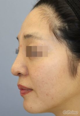 鼻中隔延長術+隆鼻術+眉間プロテーゼ挿入術、アクアミド除去、鼻翼縮小術(内側法)を施行しました。