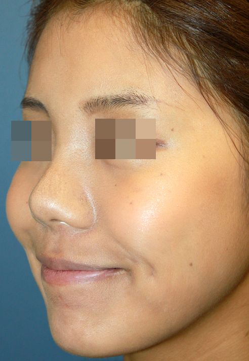 えくぼ形成術後1カ月の斜めからの経過写真です。