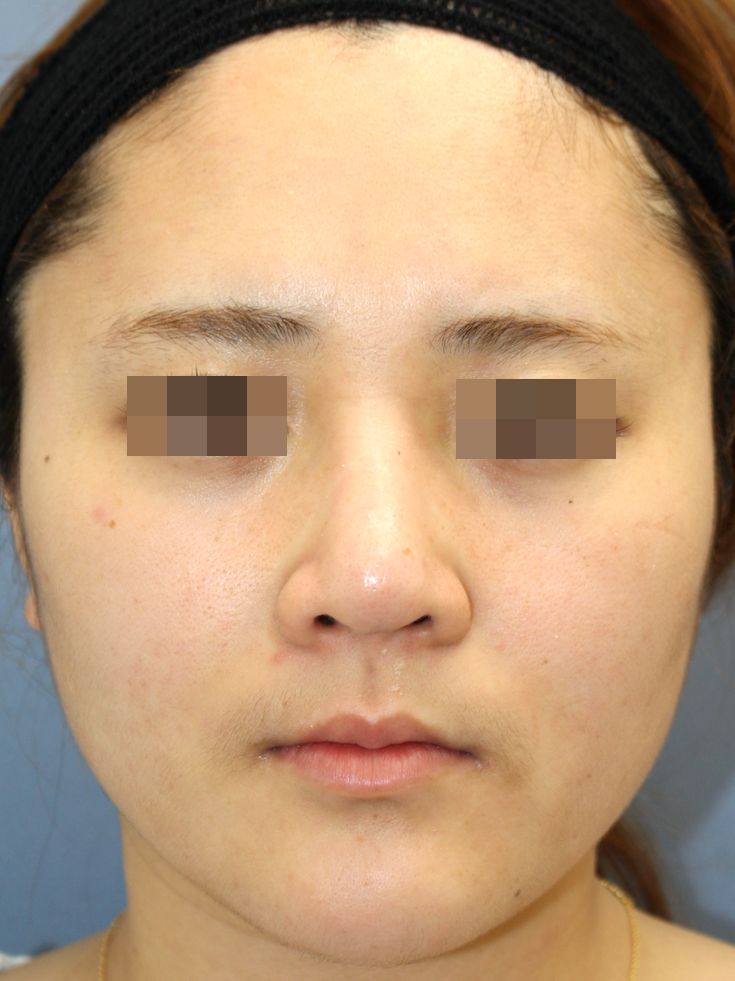 手術前の正面です。 術前は他院で鼻尖形成+プロテーゼを2枚重ねで隆鼻術をおこなっていらっしゃいました。 高さや形をもっと改善させたいという希望から、 当院で鼻中隔延長術+他院鼻プロテーゼ入れ替え術+眉間プロテーゼ手術をおこないました。 鼻中隔延長術+他院鼻プロテーゼ入れ替え術+眉間プロテーゼ手術後6ヶ月の経過写真です。 鼻先は瘢痕でカチカチの厳しい状態でしたが、 鼻中隔延長術を耳介軟骨移植を用いて最大限活用し修正いたしました。 手術前の斜めからです。 手術後6ヶ月の斜めからです。 手術後は鼻中隔延長によって鼻先が高くなり、下向きになりました。 手術前の横からです。 手術後6ヶ月の横からです。 術後は鼻中隔延長術の効果で鼻先が高く下向きになりました。 プロテーゼを入れ替え、眉間から鼻先までバランスよく高さが得られました。 顔に立体感ができ、E lineがより良い感じになりました。 ・費用(税込、麻酔代別) 鼻中隔延長術 ¥660,000 他院鼻プロテーゼ入れ替え術 ¥440,000 眉間プロテーゼ ¥330,000 ・リスク・副作用(起こり得る可能性のあること) 腫れ、内出血、鼻出血、鼻づまり 鼻柱の傷跡 鼻先、耳介の知覚低下 鼻の傾き 鼻尖部の挙上ができない 鼻の形の左右差 プロテーゼの動揺 鼻中隔延長術 鼻プロテーゼ入れ替え術 眉間プロテーゼ にほんブログ村 美容外科ブログランキングへ Tags:眉間プロテーゼ鼻プロテーゼ入れ替え術鼻中隔延長術