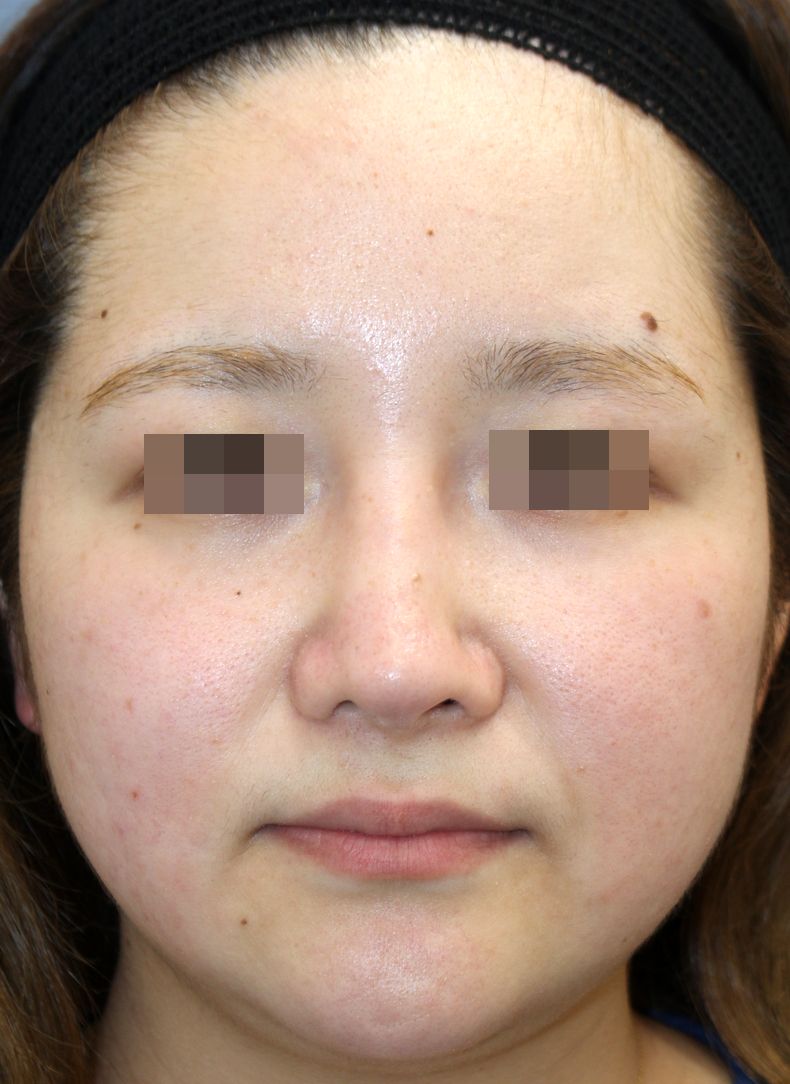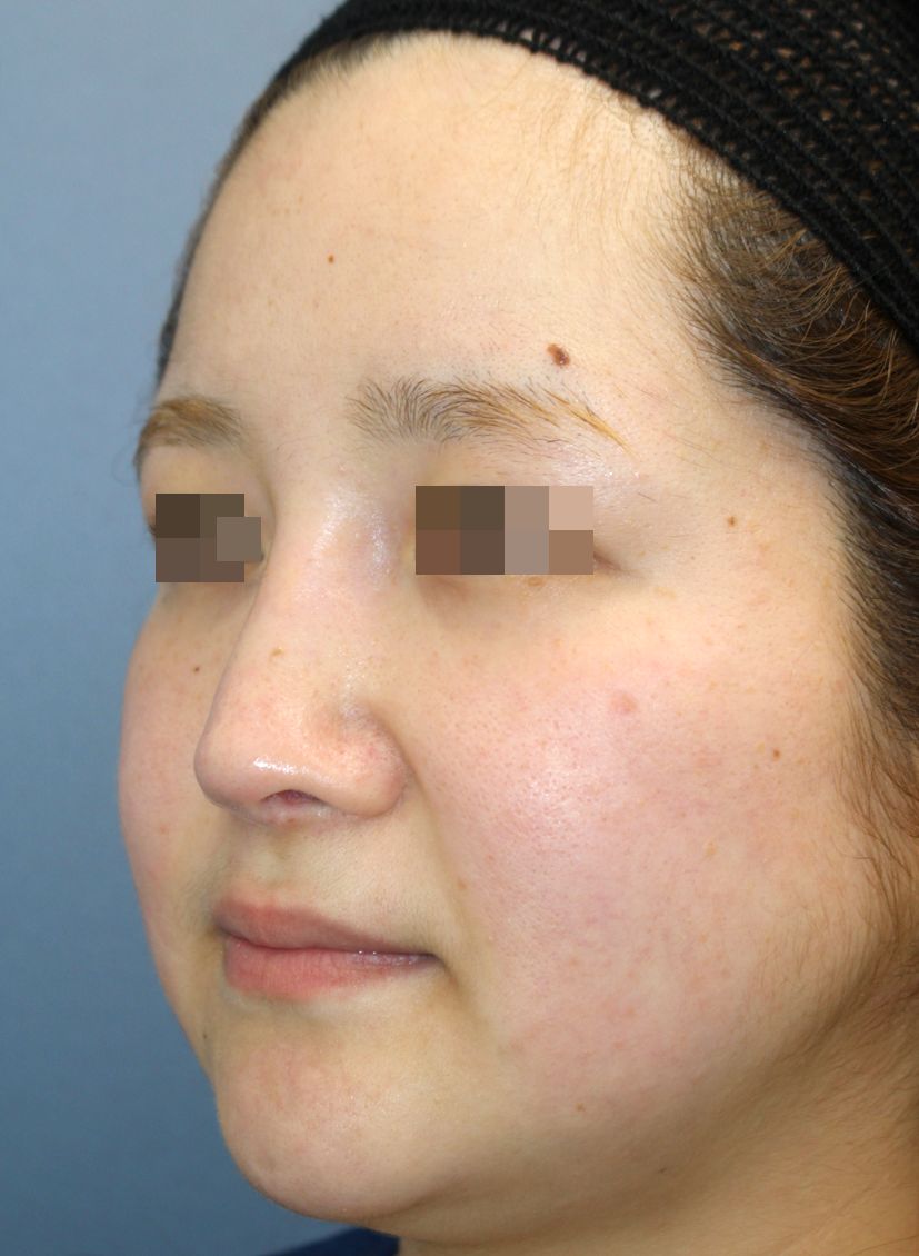 手術前の正面です。 術前は韓国で鼻の手術を受けていらっしゃいましたが、 左の鼻孔縁が吊り上がり左右差が気になる点、鼻先の不自然さ、鼻柱部の曲がり、左右差、鼻根部のプロテーゼのスタートが分かりやすいなどが不満な点でした。 当院で左鼻孔縁形成術、鼻中隔延長術修正術、他院鼻プロテーゼ入れ替え術+眉間プロテーゼ手術を行い修正いたしました。鼻柱も同時に修正しています。 左鼻孔縁形成術+他院鼻中隔延長術修正術+他院鼻プロテーゼ入れ替え術+眉間プロテーゼ手術後1年8ヶ月の経過写真です。 術後は鼻孔縁も左右ほぼそろい、鼻根部から鼻先までの流れも改善しています。 手術前の斜めからです。 手術後1年8ヶ月の斜めからです。 術後は鼻孔縁形成術によって左鼻孔が見えにくくなっています。 眉間の不自然さも解消しています。 手術前の横からです。 手術後1年8ヶ月の横からです。 術後は眉間プロテーゼの効果で前額からの流れも良くなり、 鼻先も韓国風からご希望の下向き加減に形成できています。 鼻柱の出過ぎた感じも改善しています。 ・費用(税込、麻酔代別) 鼻孔縁形成術 ¥550,000 鼻中隔延長術 ¥660,000 他院鼻プロテーゼ入れ替え術 ¥440,000 眉間プロテーゼ ¥330,000 ・リスク・副作用(起こり得る可能性のあること) 腫れ、内出血、鼻出血、鼻づまり 鼻柱の傷跡 鼻先、耳介の知覚低下 鼻の傾き 鼻尖部の挙上ができない 鼻の形の左右差 プロテーゼの動揺 鼻孔の左右差 鼻先、鼻孔の周辺が硬くなる、厚くなる 鼻孔縁形成術 鼻中隔延長術 鼻プロテーゼ入れ替え術 眉間プロテーゼ にほんブログ村 美容外科ブログランキングへ Tags:他院鼻プロテーゼ入れ替え術眉間プロテーゼ鼻中隔延長術修正術鼻孔縁形成術