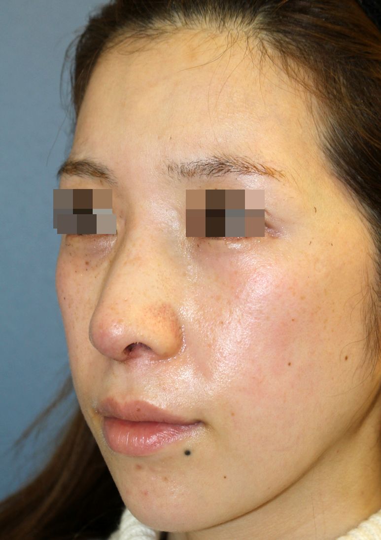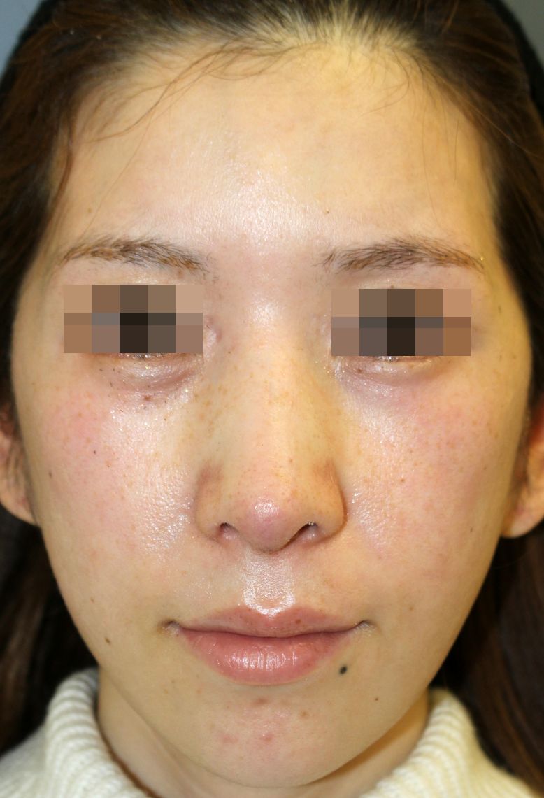 手術前の正面です。 以前に他院で糸による鼻先形成(フレックスノーズ)および カルシウムハイドロキシアパタイト注入を受けていらっしゃいました。 鼻の下が長いのを改善させたい、小鼻も主張している感じを緩和したいという希望から、 鼻中隔延長術+鼻背部軟骨移植術を行いました。 フレックスノーズ修正も行っています。 鼻中隔延長術+鼻背部軟骨移植術手術後1週間の経過写真です。 手術後は鼻の下の長さが短くなりました。 小鼻の感じも控えめに見えるようになりました。 手術前の斜めからです。 手術後1週間の斜めからです。 術後は鼻中隔延長術により鼻先が高く細く下向きになっています。 手術前の横からです。 手術後1週間の横からです。 術後は鼻中隔延長術によって鼻先が高く下向きになり、 鼻柱も下りて鼻の下の長さが短くなりました。 E lineも改善いたしました。 ・費用(税別、麻酔代別) 鼻中隔延長術 ¥600,000 鼻背部軟骨移植術 ¥300,000 ・リスク・副作用(起こり得る可能性のあること) 腫れ、内出血、鼻出血、鼻づまり 鼻柱の傷跡 鼻先、耳介の知覚低下 鼻の傾き 鼻尖部の挙上ができない 鼻の形の左右差 鼻中隔延長術 にほんブログ村 美容外科ブログランキングへ Tags:フレックスノーズ修正鼻中隔延長術鼻背部軟骨移植術