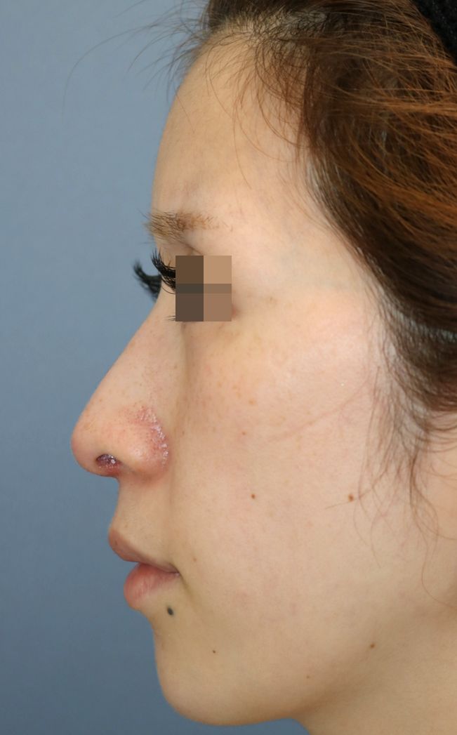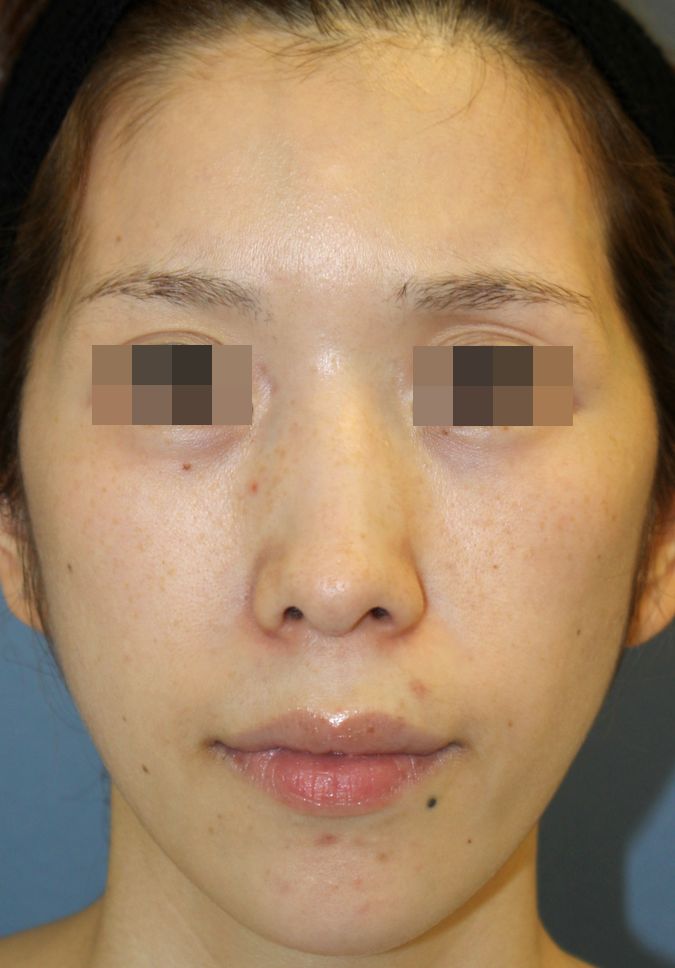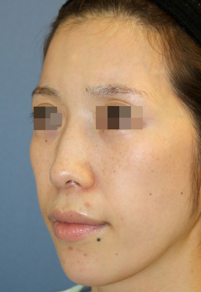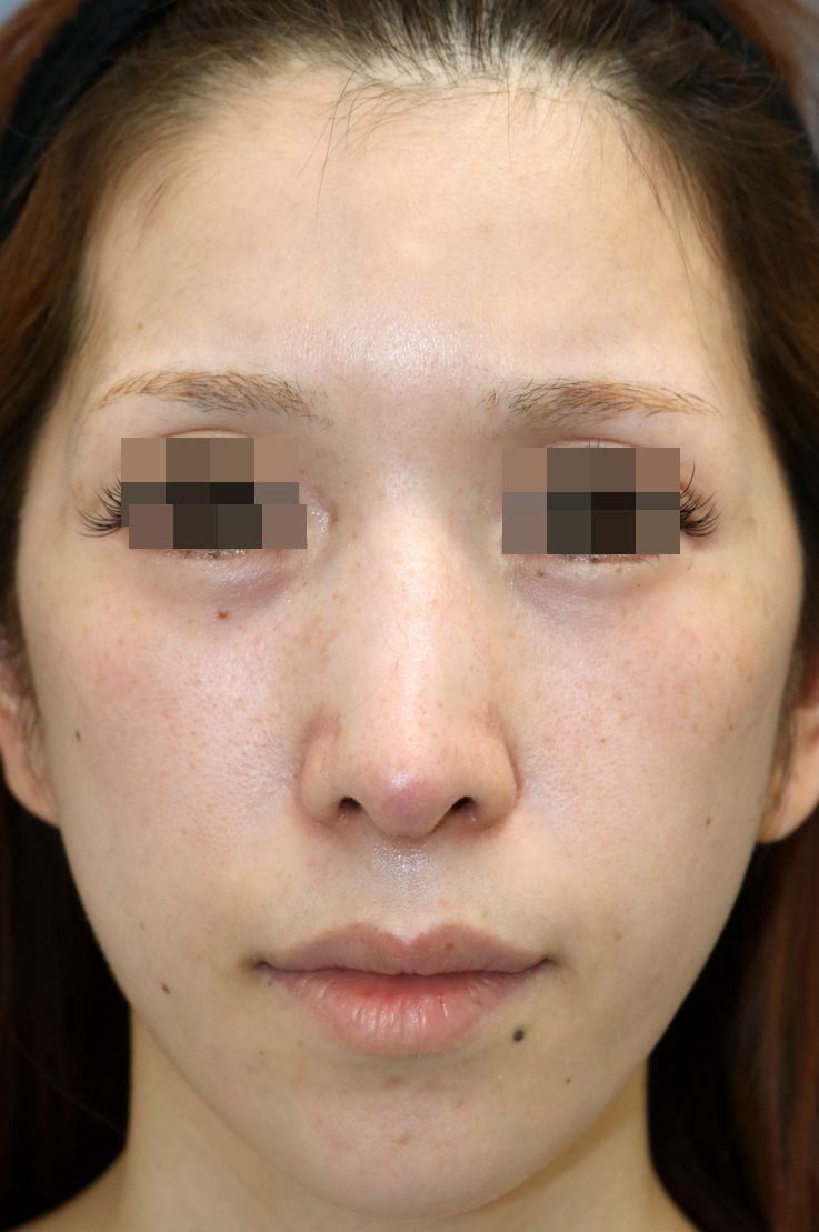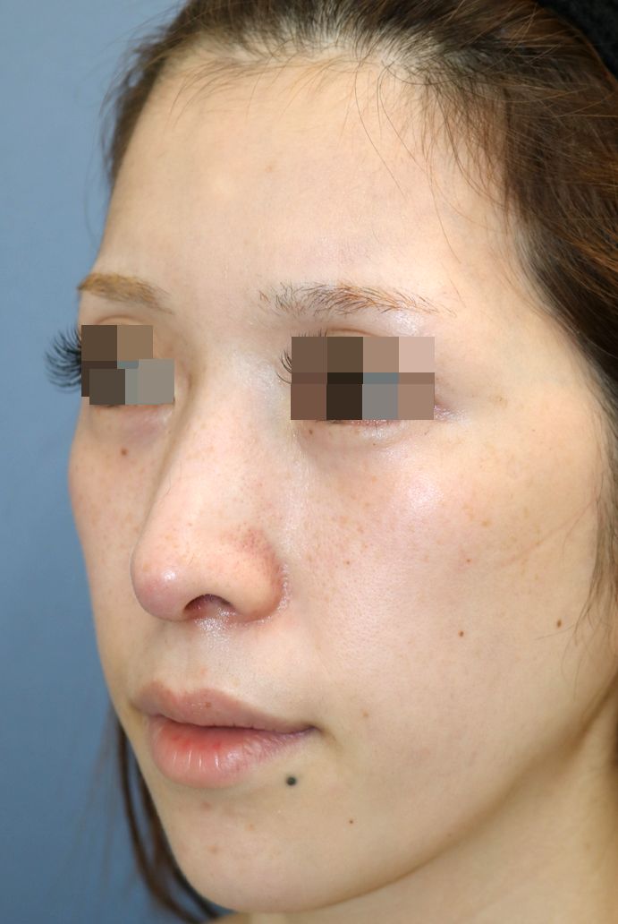 手術前の正面です。 術前は鼻の下が長いのが嫌で、小鼻もやや目立つという悩みをお持ちでした。 他院でフレックスノーズおよびカルシウムハイドロキシアパタイト注入を受けられましたが、 効果が持続しなかったようです。 当院で鼻中隔延長術(耳介軟骨移植)+鼻背部軟骨移植術を行いました。 フレックスノーズ修正も行っています。 鼻中隔延長術+鼻背部軟骨移植術手術後1ヶ月の経過写真です。 術後は鼻中隔延長の効果で鼻柱が下り、鼻の下が長い印象が緩和しています。 手術前の斜めからです。 手術後1ヶ月の斜めからです。 術後は鼻中隔延長術によって鼻先が下向きに細くなりました。 手術前の横からです。 手術後1ヶ月の横からです。 術後は鼻中隔延長により鼻先が高くなっています。 鼻背ラインも鼻背部軟骨移植術によって整いました。 鼻柱口唇角もE lineも術後は改善しています。 ・費用(税別、麻酔代別) 鼻中隔延長術 ¥600,000 鼻背部軟骨移植術 ¥300,000 ・リスク・副作用(起こり得る可能性のあること) 腫れ、内出血、鼻出血、鼻づまり 鼻柱の傷跡 鼻先、耳介の知覚低下 鼻の傾き 鼻尖部の挙上ができない 鼻の形の左右差 鼻中隔延長術 にほんブログ村 美容外科ブログランキングへ Tags:フレックスノーズ修正鼻中隔延長術鼻背部軟骨移植術