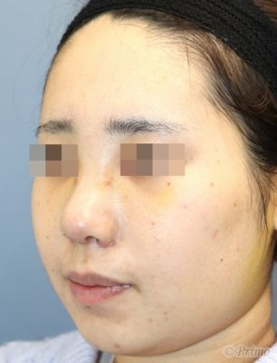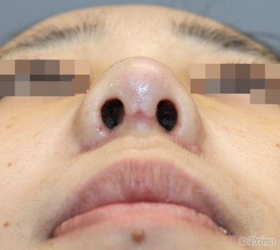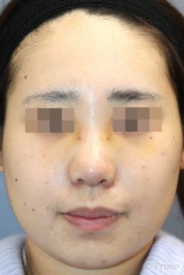 鼻中隔延長術+隆鼻+眉間プロテーゼ手術、鼻翼縮小術(内側法)を施行しました。