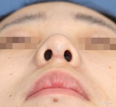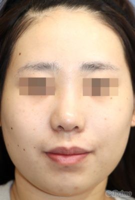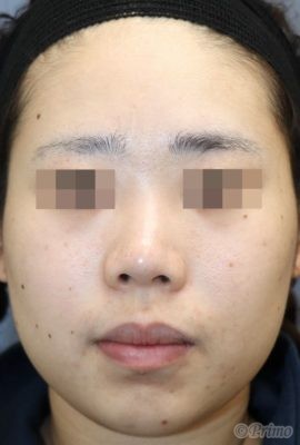 鼻中隔延長術+隆鼻+眉間プロテーゼ手術、鼻翼縮小術(内側法)を施行しました。