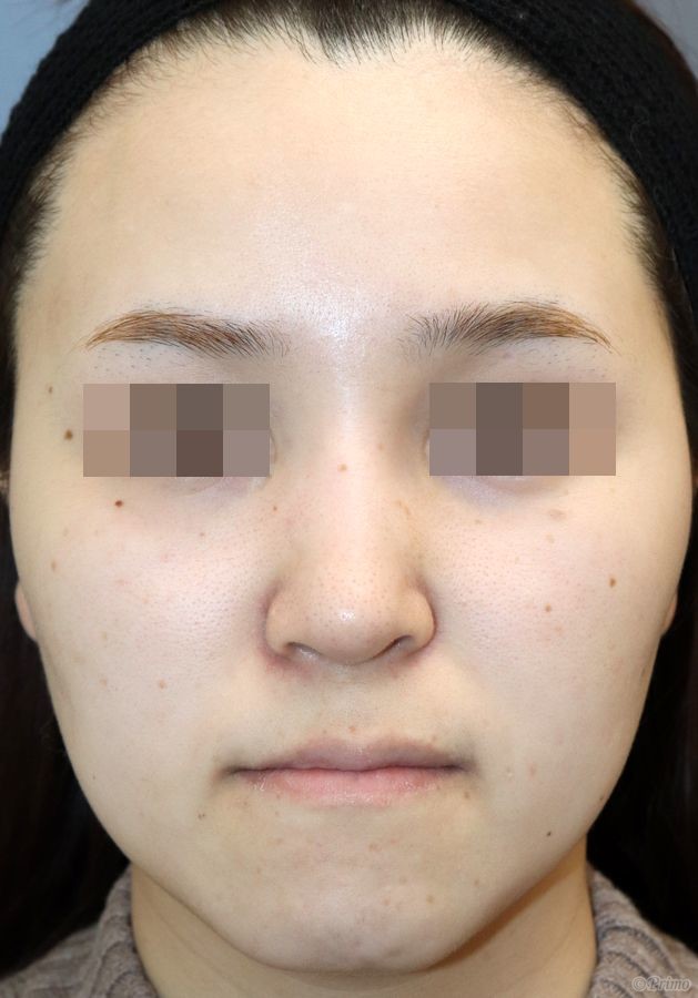 手術前の正面です。 他院で入れたI型プロテーゼが右に曲がってしまい、 鼻先もプロテーゼに押されて鼻翼が広がってしまっていました。 鼻筋を真っ直ぐに整えるため、 鼻中隔延長術+他院鼻プロテーゼ入れ替え術(オーダーメイドプロテーゼ)+眉間プロテーゼを行いました。 鼻中隔延長術+他院鼻プロテーゼ入れ替え術+眉間プロテーゼ手術後2ヶ月の経過写真です。 術後は鼻先が下向きに高くなり、眉間から鼻筋が真っ直ぐきれいにとおりました。 手術前の斜めからです。 手術後2ヶ月の斜めからです。 手術前の横からです。 手術後2ヶ月の横からです。 眉間から鼻先にかけてバランス良く高くなりました。 E-lineが改善し、口元が控えめに見えるようになりました。 ・費用(税別、麻酔代別) 鼻中隔延長術 ¥600,000 他院鼻プロテーゼ入れ替え術 ¥400,000 眉間プロテーゼ ¥300,000 他院修正術 ¥300,000 ・リスク・副作用(起こり得る可能性のあること) 腫れ、内出血、鼻出血、鼻づまり 鼻柱の傷跡 鼻先、耳介の知覚低下 鼻の傾き 鼻尖部の挙上ができない 鼻の形の左右差 プロテーゼの動揺 鼻中隔延長術 鼻プロテーゼ入れ替え術 眉間プロテーゼ にほんブログ村 美容外科 ブログランキングへ Tags:眉間プロテーゼ鼻プロテーゼ入れ替え術鼻中隔延長術