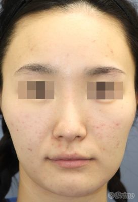 以前他院にて鼻尖縮小術、当院にてゴアテックスによる隆鼻術、眉間プロテーゼを受けられた方です。