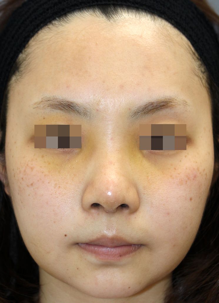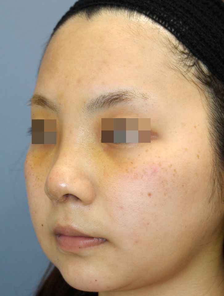 - 稀にでることがあります。内出血が生じると鼻周囲、頬など黄色っぽくなります。個人差はありますが、通常1〜2週間で自然に吸収され消失いたします。