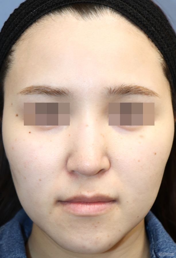 手術前の正面です。 他院で入れたI型プロテーゼが右に曲がってしまい、 鼻先もプロテーゼに押されて鼻翼が広がってしまっていました。 鼻筋を真っ直ぐに整えるため、 鼻中隔延長術+他院鼻プロテーゼ入れ替え術(オーダーメイドプロテーゼ)+眉間プロテーゼを行いました。 鼻中隔延長術+他院鼻プロテーゼ入れ替え術+眉間プロテーゼ手術後6ヶ月の経過写真です。 術後は鼻が長くなり、鼻先が下向きに高くなりました。 眉間から鼻筋が真っ直ぐきれいにとおりました。 手術前の斜めからです。 手術後6ヶ月の斜めからです。 手術前の横からです。 手術後6ヶ月の横からです。 眉間から鼻先にかけてバランス良く高くなりました。 E-lineが改善し、口元が控えめに見えるようになりました。 ・費用(税別、麻酔代別) 鼻中隔延長術 ¥600,000 他院鼻プロテーゼ入れ替え術 ¥400,000 眉間プロテーゼ ¥300,000 他院修正術 ¥300,000 ・リスク・副作用(起こり得る可能性のあること) 腫れ、内出血、鼻出血、鼻づまり 鼻柱の傷跡 鼻先、耳介の知覚低下 鼻の傾き 鼻尖部の挙上ができない 鼻の形の左右差 プロテーゼの動揺 鼻中隔延長術 鼻プロテーゼ入れ替え術 眉間プロテーゼ にほんブログ村 美容外科 ブログランキングへ Tags:眉間プロテーゼ鼻プロテーゼ入れ替え術鼻中隔延長術