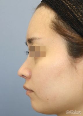 当院にて鼻中隔延長術+鼻背部軟骨移植術+鼻翼縮小術(内側法)を行いました。