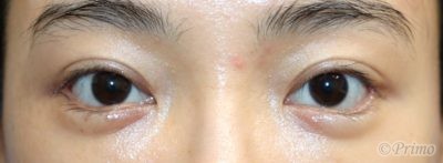 下眼瞼拡大術+目尻切開の術後2週の正面写真です。
