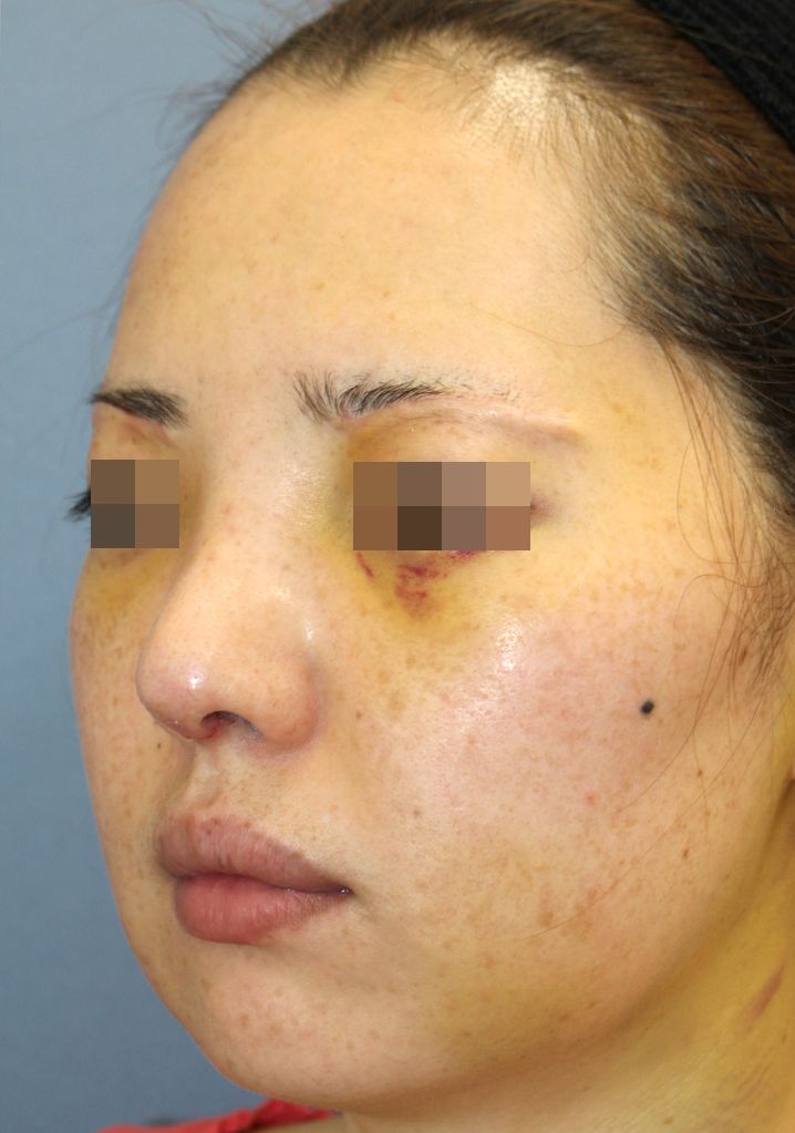 手術前の正面です。 術前は他院でL型プロテーゼを入れていらっしゃいました。 もう少し鼻先を高く下向きにしたい、ほっそりとした鼻にしたい、鼻全体的にバランスよく高くしたいという希望から、 当院で鼻中隔延長術+他院鼻プロテーゼ入れ替え術+眉間プロテーゼ手術を行いました。 鼻中隔延長術+他院鼻プロテーゼ入れ替え術+眉間プロテーゼ手術後1週間の経過写真です。 術後は鼻中隔延長術の効果によって鼻先が下向きになり、鼻の穴が見えにくくなりました。 手術前の斜めからです。 手術後1週間の斜めからです。 術後は鼻中隔延長の効果によって鼻先が下向きに変わっています。 短い鼻が長くなりました。 手術前の横からです。 手術後1週間の横からです。 鼻中隔延長術の効果で鼻先が高く下向きになりました。 眉間からのプロテーゼによって鼻が上方向にも長くなりバランスが改善しています。 ・費用(税別、麻酔代別) 鼻中隔延長術 ¥600,000 他院鼻プロテーゼ入れ替え術 ¥400,000 眉間プロテーゼ ¥300,000 他院修正術 ¥300,000 ・リスク・副作用(起こり得る可能性のあること) 腫れ、内出血、鼻出血、鼻づまり 鼻柱の傷跡 鼻先、耳介の知覚低下 鼻の傾き 鼻尖部の挙上ができない 鼻の形の左右差 プロテーゼの動揺 鼻中隔延長術 眉間プロテーゼ にほんブログ村 美容外科ブログランキングへ Tags:他院鼻プロテーゼ入れ替え術眉間プロテーゼ鼻プロテーゼ入れ替え術鼻中隔延長術