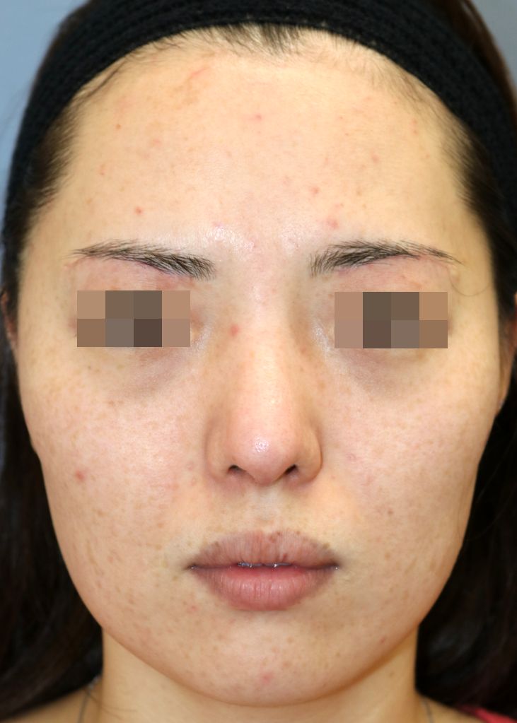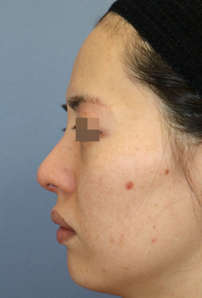 手術前の正面です。 術前は他院でL型プロテーゼをいれていました。 鼻全体をもっと高く、鼻先が丸く上向きなのを下向きに細くしたいという希望から、 当院で鼻中隔延長術+他院鼻プロテーゼ入れ替え術+眉間プロテーゼ手術を行いました。 眉間からのゴアテックス製プロテーゼにより鼻筋がしっかりと通っています。 鼻中隔延長術+他院鼻プロテーゼ入れ替え術+眉間プロテーゼ手術後2ヶ月の経過写真です。 術後は鼻中隔延長術の効果で鼻先がほっそりとしています。 鼻翼も控えめに見えるよになりました。 鼻の穴が正面から見えにくくなりました。 手術前の斜めからです。 手術後2ヶ月の斜めからです。 術後は鼻中隔延長の効果によって鼻先が下向きに細く尖りました。 手術前の横からです。 手術後2ヶ月の横からです。 術後の腫れもだんだんと落ち着いてきて、 鼻根部のアクセントも表れてきました。 鼻全体が高くなり、上下に鼻が長くなりバランスが改善しました。 ・費用(税別、麻酔代別) 鼻中隔延長術 ¥600,000 他院鼻プロテーゼ入れ替え術 ¥400,000 眉間プロテーゼ ¥300,000 他院修正術 ¥300,000 ・リスク・副作用(起こり得る可能性のあること) 腫れ、内出血、鼻出血、鼻づまり 鼻柱の傷跡 鼻先、耳介の知覚低下 鼻の傾き 鼻尖部の挙上ができない 鼻の形の左右差 プロテーゼの動揺 鼻中隔延長術 眉間プロテーゼ にほんブログ村 美容外科ブログランキングへ Tags:眉間プロテーゼ鼻プロテーゼ入れ替え術鼻中隔延長術