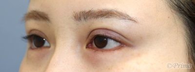 他院で埋没法を受けておられますが、瞼のたるみを取り、より広い二重ラインを希望し受診されました。