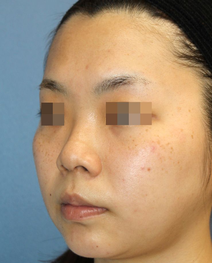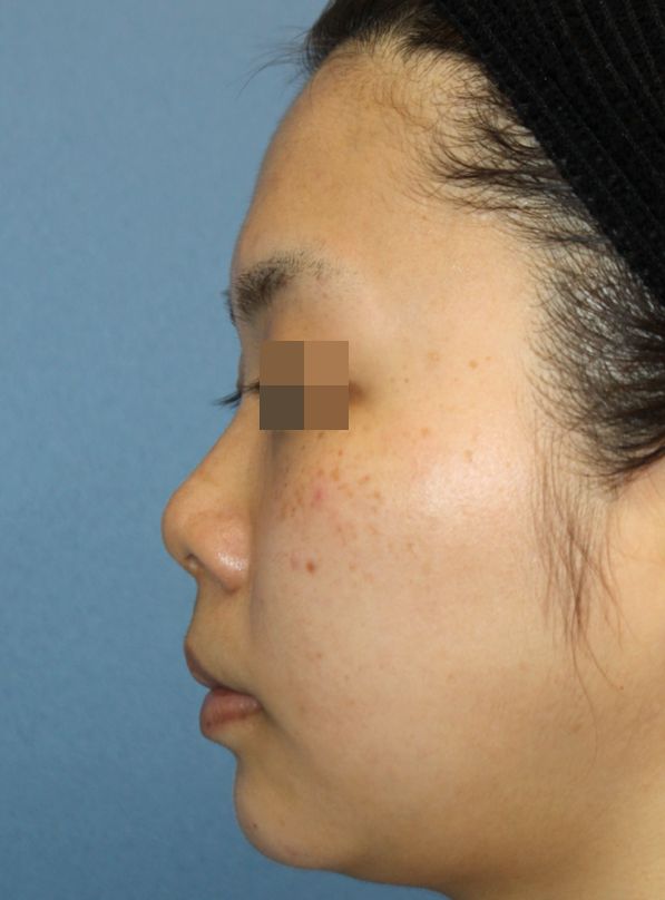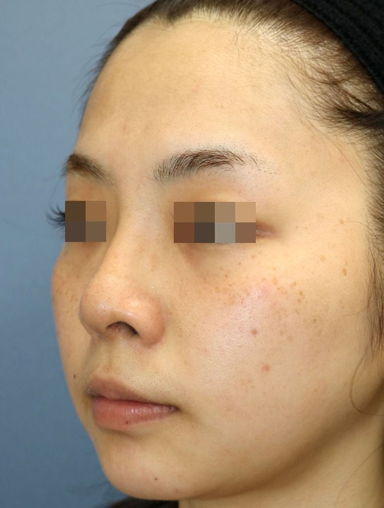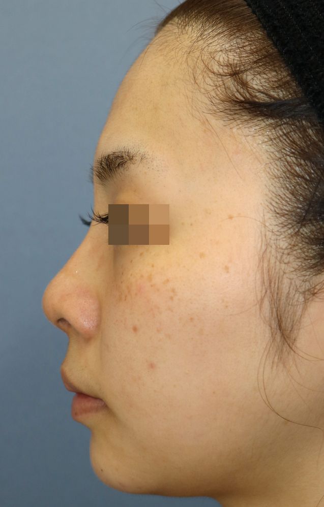 鼻中隔延長術+隆鼻術+眉間プロテーゼ手術後3ヶ月の経過写真です。
