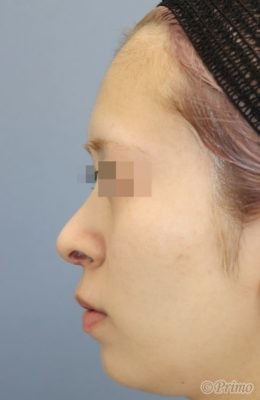 術後は鼻中隔延長術の効果で上方にあった鼻柱が下に伸びて、鼻先が下向きになりました。