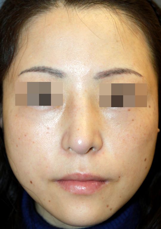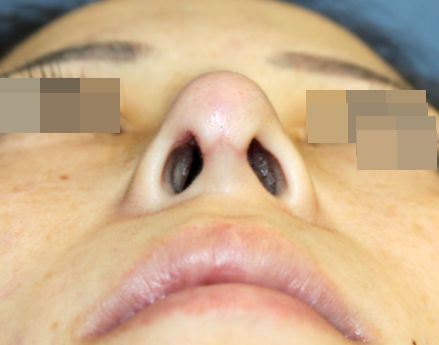 鼻中隔延長術+鼻プロテーゼ入れ替え(L型→I型)手術後1カ月の経過写真です。