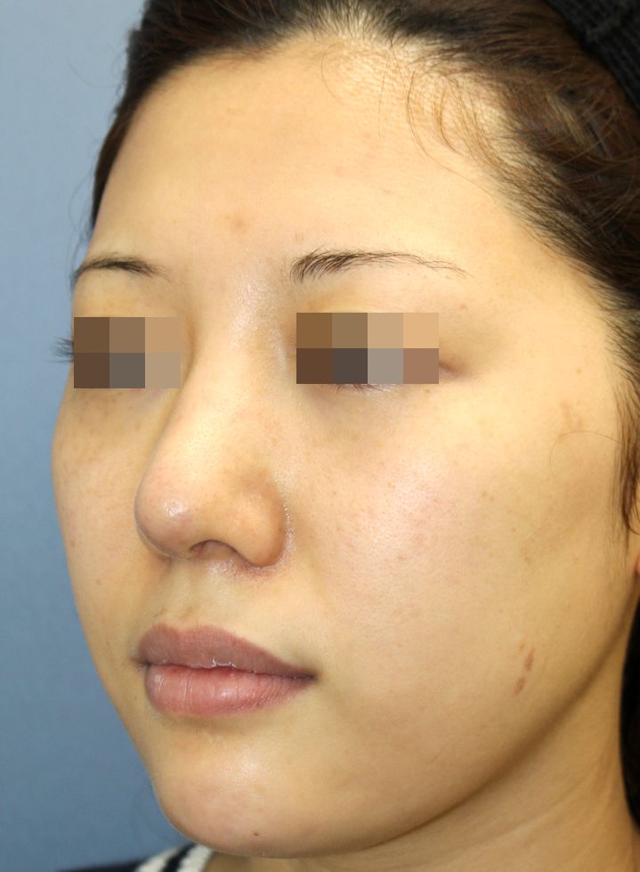 手術前の正面です。 術前は他院で鼻中隔延長術+鼻プロテーゼ+鼻尖縮小術を受けていらっしゃいました。 鼻が曲がっていて、シリコンも鼻根部で始まりが分かりやすく、浮いて不自然に見える、眉間がないのも嫌ということで、 当院で他院鼻中隔延長術修正術+他院鼻プロテーゼ入れ替え術+眉間プロテーゼ手術を行いました。 鼻中隔延長術+他院鼻プロテーゼ入れ替え術+眉間プロテーゼ手術+アゴプロテーゼ手術後2週間の経過写真です。 術後は眉間から鼻筋がしっかりと通りました。 手術前の斜めからです。 手術後2週間の斜めからです。 手術前の横からです。 手術後2週間の横からです。 鼻プロテーゼを入れ替え、鼻根部あたりもアクセントができ自然になりました。 アゴプロテーゼによってE lineの改善が認められます。 鼻中隔延長術修正術によって鼻柱が下り上口唇も短くなっています。 ・費用(税別、麻酔代別) 鼻中隔延長術 ¥600,000 他院鼻プロテーゼ入れ替え術 ¥400,000 眉間プロテーゼ ¥300,000 他院修正術 ¥300,000 アゴプロテーゼ ¥350,000 特別注文プロテーゼ +¥100,000 ・リスク・副作用(起こり得る可能性のあること) 腫れ、内出血、鼻出血、鼻づまり 傷跡、血種 鼻の傾き 鼻尖部の挙上ができない 感覚異常 プロテーゼの動揺、位置異常、左右差 骨吸収 鼻中隔延長術 眉間プロテーゼ アゴプロテーゼ にほんブログ村 美容外科ブログランキングへ Tags:アゴプロテーゼ他院鼻プロテーゼ入れ替え術眉間プロテーゼ鼻プロテーゼ入れ替え術鼻中隔延長術鼻中隔延長術修正術