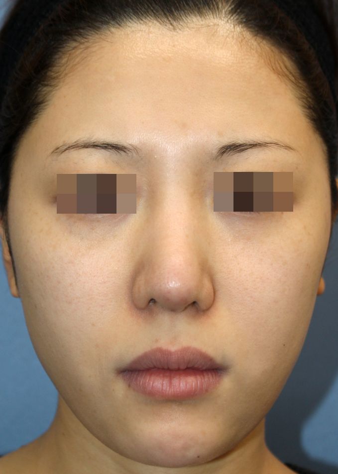 手術前の正面です。 術前は他院で鼻中隔延長術+鼻尖縮小術+鼻プロテーゼ手術を受けていらっしゃいました。 プロテーゼが曲がっている点、眉間から始まっていない点、鼻先の不自然さなどを改善したいという希望から、 当院で他院鼻中隔延長術修正術+他院鼻プロテーゼ入れ替え術+眉間プロテーゼ手術+アゴプロテーゼ手術を行いました。 他院鼻中隔延長術修正術+他院鼻プロテーゼ入れ替え術+眉間プロテーゼ手術+アゴプロテーゼ手術後1ヶ月の経過写真です。 術後は眉間から鼻筋がまっすぐに通りました。 鼻中隔延長術の効果によって鼻柱がおりて口元が控えめになっています。 手術前の斜めからです。 手術後1ヶ月の斜めからです。 術後は鼻中隔延長術の効果によって鼻先が下向きになりました。 眉間プロテーゼの効果でおでこからのつながりも良くなっています。 手術前の横からです。 手術後1ヶ月の横からです。 術後はプロテーゼの入れ替え術によっておでこからの流れが良くなっています。 鼻中隔延長術によって鼻柱が下りて口元が控えめになりました。 アゴプロテーゼは前に出すように入れておりE lineが改善しました。 上方向で鼻が短くなったので顔のバランスが改善し小顔に見えるようになりました。 ・費用(税別、麻酔代別) 鼻中隔延長術 ¥600,000 他院鼻プロテーゼ入れ替え術 ¥400,000 眉間プロテーゼ ¥300,000 他院修正術 ¥300,000 アゴプロテーゼ ¥350,000 特別注文プロテーゼ +¥100,000 ・リスク・副作用(起こり得る可能性のあること) 腫れ、内出血、鼻出血、鼻づまり 傷跡、血種 鼻の傾き 鼻尖部の挙上ができない 感覚異常 プロテーゼの動揺、位置異常、左右差 骨吸収 鼻中隔延長術 眉間プロテーゼ アゴプロテーゼ にほんブログ村 美容外科ブログランキングへ Tags:アゴプロテーゼ眉間プロテーゼ鼻プロテーゼ入れ替え術鼻中隔延長術鼻中隔延長術修正術
