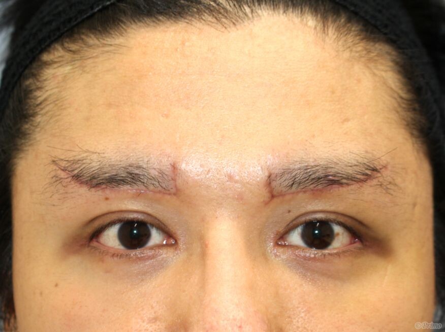 手術前の目元です。 他院で2-3ヶ月前に埋没法を行っていらっしゃいました。 眉毛と目の距離を狭くしたいというご要望から、 当院で上眼瞼リフト(眉毛下切開)を行いました。 上眼瞼リフト(眉毛下切開)手術後2週間の経過写真です。 make upなしです。 術後は眉毛の位置が下がり、凛々しい印象になりました。 腫れや傷跡は経過とともに徐々に目立たなくなります。 ・費用(税別、麻酔代別) 上眼瞼リフト ¥350,000 ・リスク・副作用(起こり得る可能性のあること) 腫れ、内出血、瞼の違和感、傷跡 埋没した吸収糸の露出 眉毛の形態の変化、二重のラインの変化、瞼の形態の変化 ドライアイ、閉瞼不全 ドッグイヤー 上眼瞼リフト(眉毛下切開) にほんブログ村 美容外科ブログランキングへ