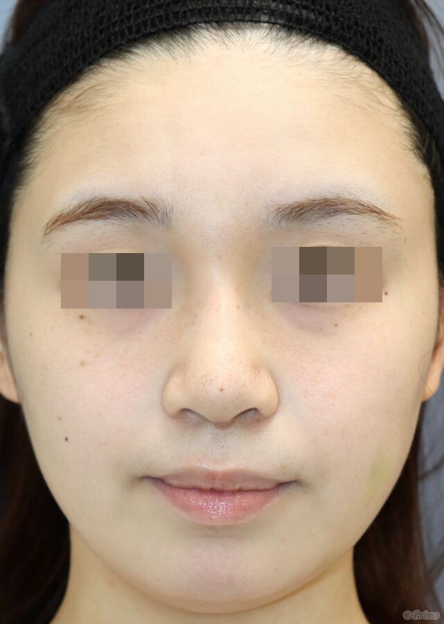 手術前の正面です。 鼻を全体的に高く、鼻先を長くしたい、 小鼻の広がりと笑った時の下ぶくれが気になるということで、 当院で鼻中隔延長術+隆鼻術+眉間プロテーゼ手術、頬アゴ脂肪吸引手術を行いました。 鼻中隔延長術+隆鼻術+眉間プロテーゼ手術+頬アゴ脂肪吸引手術後2週間の経過写真です。 術後は鼻先がバランス良く高くなりました。 鼻先が高くなったことで小鼻の広がりも控えめになりました。 まだ腫れや浮腫みがありますが、徐々にひきしまり脂肪吸引の効果が現れてきます。 手術前の斜めからです。 手術後2週間の斜めからです。 術後は鼻中隔延長術の効果により鼻柱が下り、 鼻先が高くなりました。 脂肪吸引の効果で下顎のラインがシャープになりました。 手術前の横からです。 手術後2週間の横からです。 術後は鼻中隔延長術の効果によって鼻先が高く下向きになりました。 眉間プロテーゼによって眉間から鼻背までの輪郭も自然な高さになりました。 下あごのたるみも改善しています。 ・費用(税別、麻酔代別) 鼻中隔延長術 ¥600,000 鼻背部軟骨移植術 ¥300,000 頬顎脂肪吸引 ¥400,000 ・リスク・副作用(起こり得る可能性のあること) 腫れ、内出血、鼻出血、鼻づまり 鼻柱の傷跡 鼻先、耳介の知覚低下 鼻の傾き 鼻尖部の挙上ができない 鼻の形の左右差 創の赤み、盛り上がり、かゆみ 皮膚の張りの低下 吸引部位のしびれ、知覚低下 鼻中隔延長術 脂肪吸引 にほんブログ村 美容外科ブログランキングへ