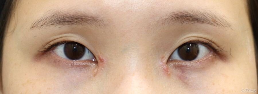 手術前の目元です。 蒙古襞を広げて目を大きくしたいというご要望から、 当院にて目頭切開手術を行いました。 目頭切開手術後1週間の経過写真です。 make upなしです。 Z形成術による目頭切開手術によって目が内側方向に大きくなり、 大人っぽい印象になりました。 ・費用(税別、麻酔代別) 目頭切開術 ¥250,000 ・リスク・副作用(起こり得る可能性のあること) 腫れ、内出血 瞼の違和感 傷跡 埋没した吸収糸の露出 瞼の形態の変化 目頭切開 にほんブログ村 美容外科ブログランキングへ Tags:目頭切開